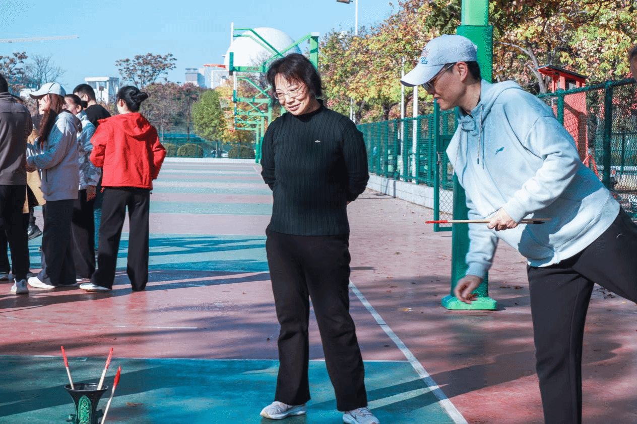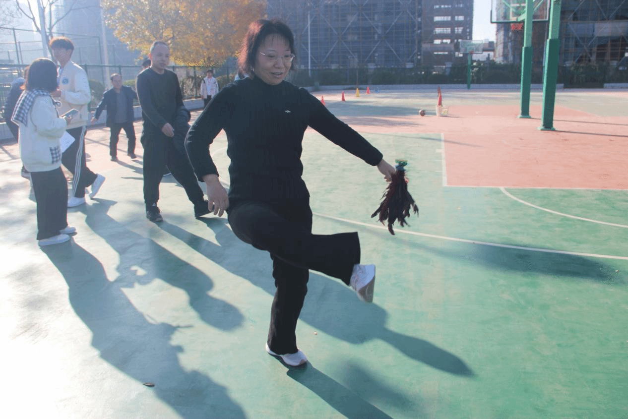 教职工们在踢毽子、跳绳、投壶等趣味项目中各展其能。他们全情投入,笑语不断,在轻松氛围中展现课堂之外的别样风采践行“健康运动,快乐工作”的理念。