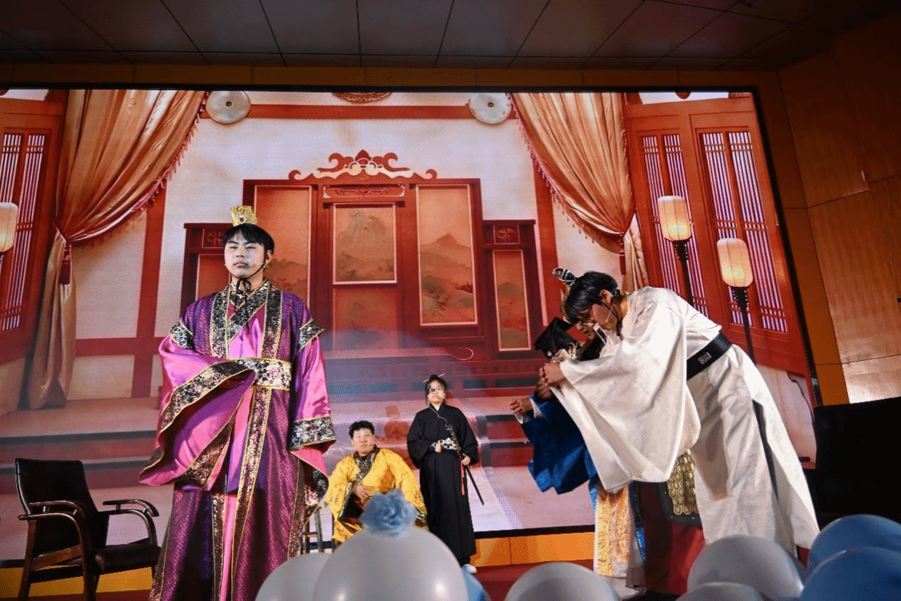 空灵而壮阔的歌曲《鹿be free》悠然响起,歌声中传递出不惧挑战、勇敢追梦的力量,正式开启晚会第一篇章。《What is love》以热情奔放的舞步和灵动的走位点燃全场;小品《龙袍替身》通过诙谐的台词与层次丰富的表演,在智慧与荒诞交织中引来阵阵欢笑与喝彩;温柔治愈的《春雨里洗过的太阳》轻声吟唱,带来温暖与希望。紧接着,《Hands up》以整齐有力的舞步释放青春活力,经典歌曲《天后》则以深情磁性的嗓音引人沉醉,令现场观众赞叹不已。