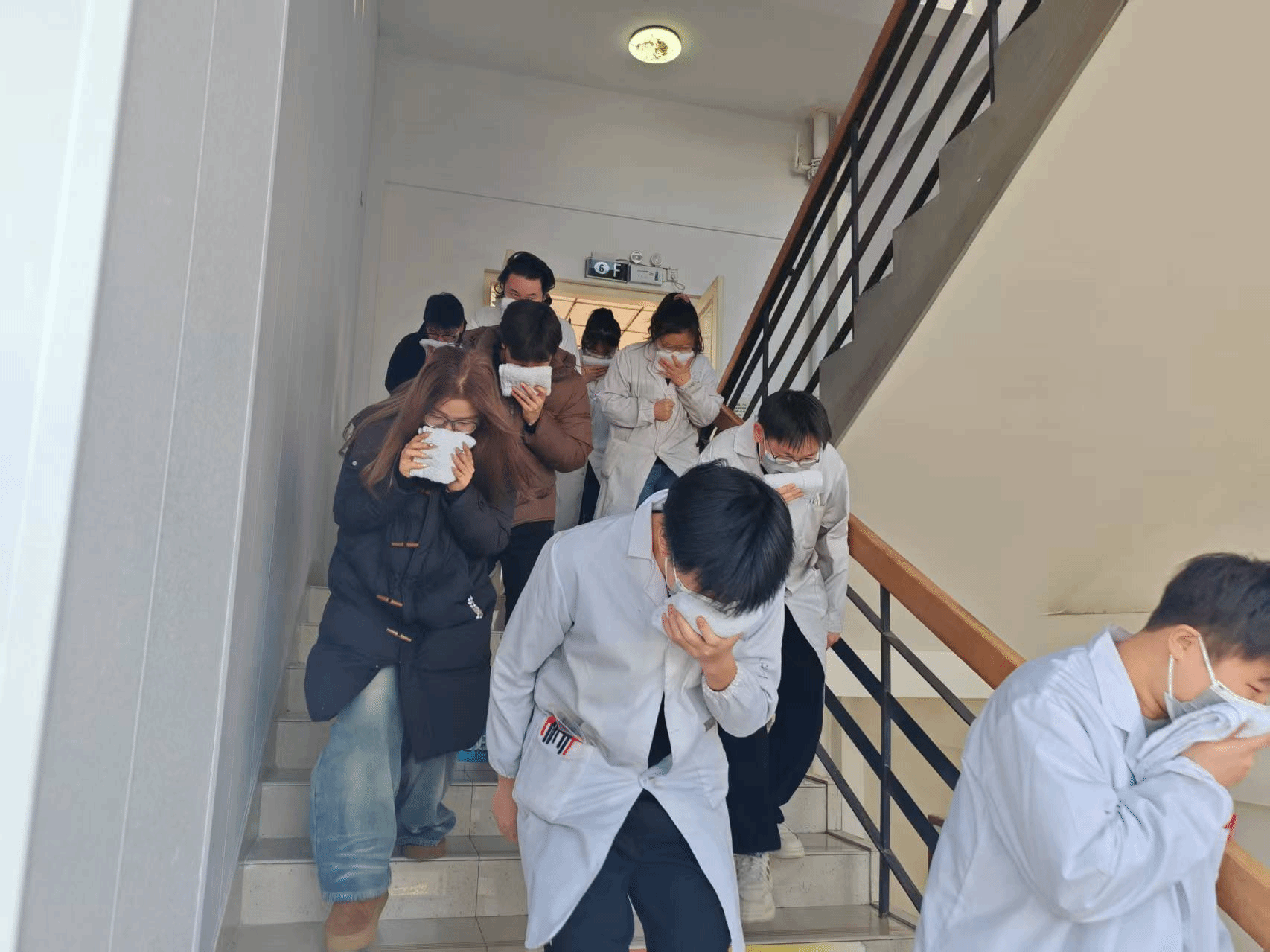 火灾事故疏散演练环节,各实验室师生迅速响应,在杨毅老师指挥下,按照预定疏散路线,弯腰、捂口鼻,有序撤离至51吃瓜
