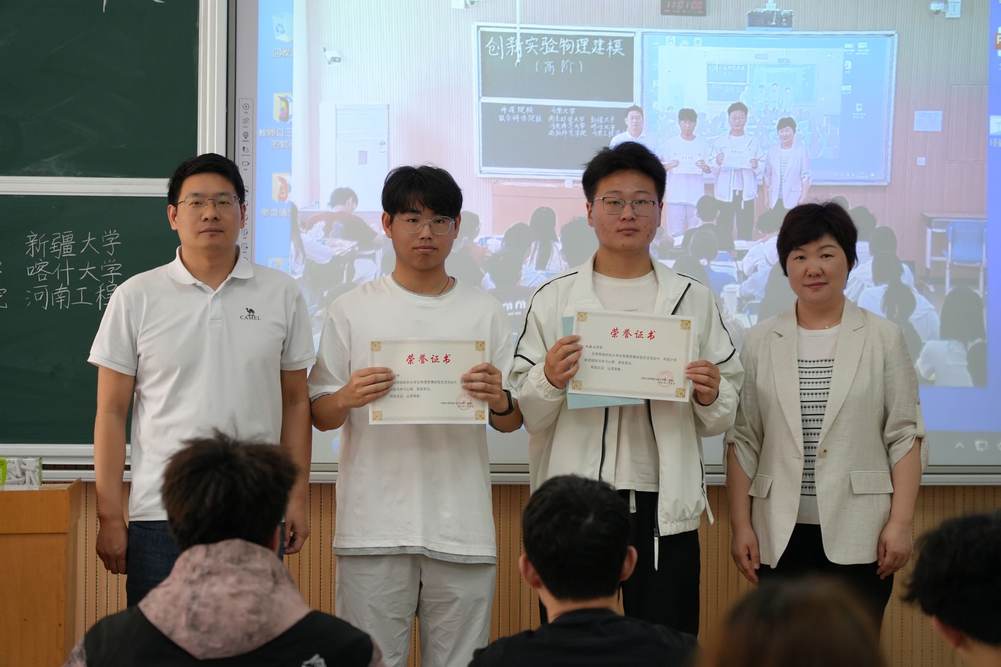 为两位同学颁发了荣誉奖状与奖品,以激励在场学子奋勇争先。
